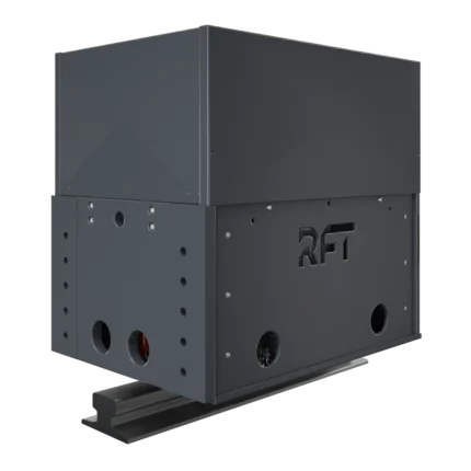 Freio/abraçadeira de trilho patenteado, com função integrada de elevação e posicionamento, ideal para sistemas de guindastes de alta velocidade ou longas travessias transversais.